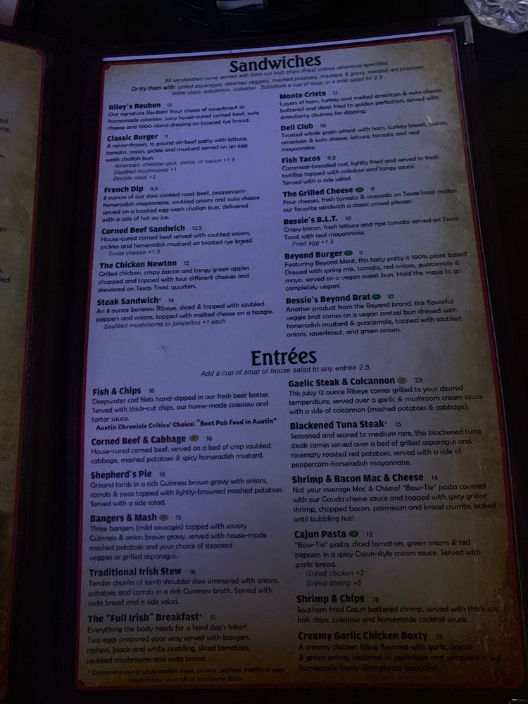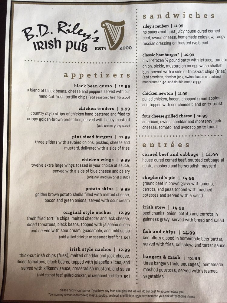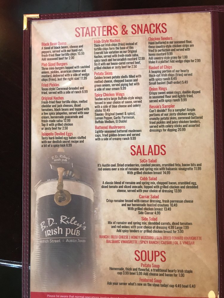 Introducing the Menu at B.D. Riley's Irish Pub at Mueller